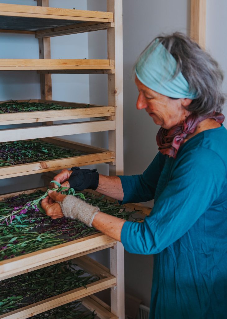 Alt høstes for hånd. Hele foredlingen skjer hos oss: tørking, rensing, blanding og pakking. Vi selger først og fremst konsumpakninger med krydder og te til matbutikker, flere museer i landsdelen og andre utsalgssteder i regionen. Produktene er økologisk godkjente (Debio).